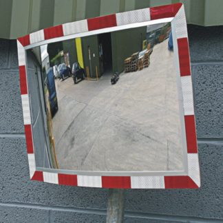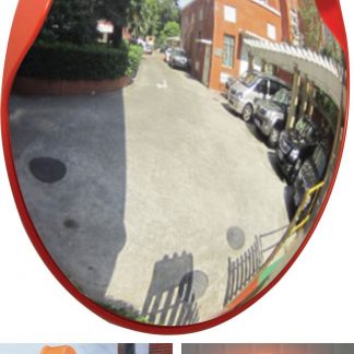LOW DISTORTION High Quality 600mm convex acrylic mirror, mounted onto a galvanized steel back plate. This mirror is